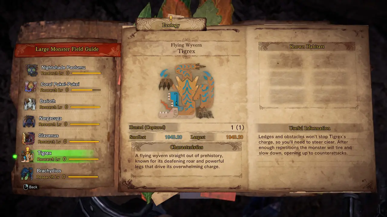 Tigrex son derece hızlıdır ve düşmanları korkutmak için kükremeyi sever. Tigrex’ler, hem üst düzey keşifler hem de avlar sırasında oyunun tüm konumlarında bulunabilir.