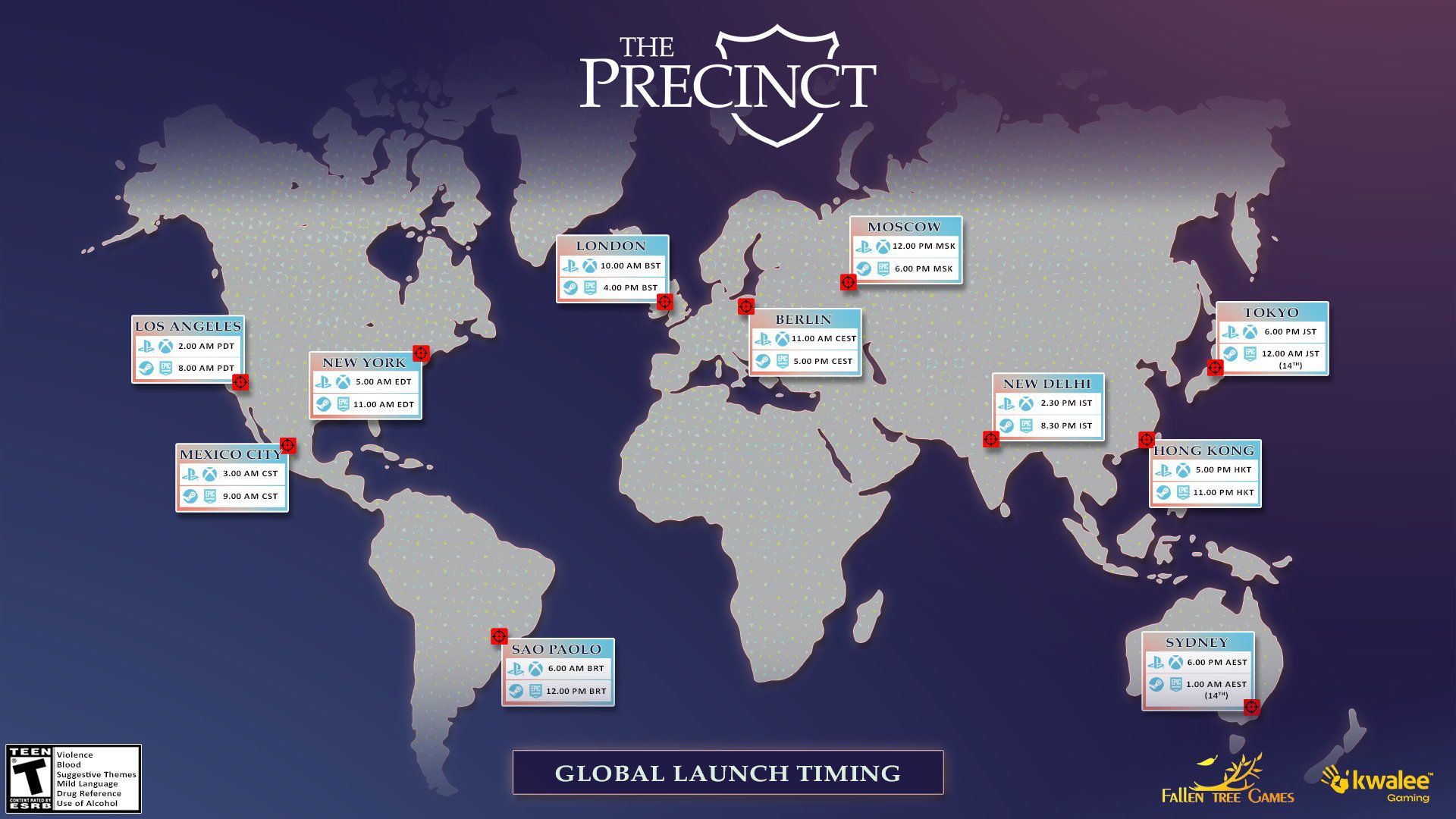 The Precinct’in 13 Mayıs 2025 tarihindeki dünya çapındaki lansman saatleri bölgelere göre şu şekilde sıralanıyor:
