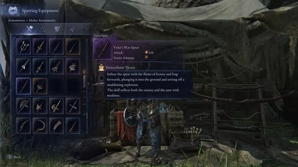 Nightreign’de Delilik etkisiyle donatılmış zırh ve silahlar açısından, şu anda bir silah, bir kalkan ve dört büyü (incantation) bulunuyor. Bunlar, aktif olarak kullanabileceğiniz veya fırlatabileceğiniz eşyalar; geri kalan her şey pasif bir etki (veya kendi riskleriyle gelen bir hareket) olarak karşımıza çıkıyor: