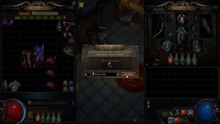 Path of Exile 2’den tanıdığımız o muhteşem eş zamansız ticaret özelliği ilk oyuna da geliyor! Artık başka oyuncular çevrimiçi olmasa bile onlardan eşya satın alabileceksiniz. Eşyalarınızı Faustus adındaki bir NPC’ye satılığa çıkarabilirsiniz – ama unutmayın, bunun için özel bir Merchant Stash Tab’e ihtiyacınız olacak.