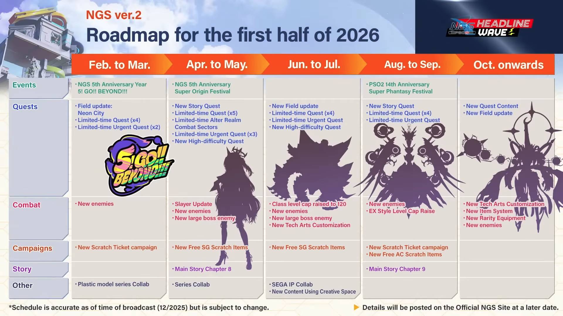 Yeni yıla çok az kaldı beyler, bu da Phantasy Star Online 2: New Genesis (PSO2: NGS) için boşlukları dolduracak bomba gibi içerikler demek! Neyse ki, Ocak ayından başlayıp taa Ekim’e kadar uzanan bir içerik takvimi şimdiden hazırlandı. Detaylar oyunun sitesinde ve bu hafta yayınlanan videolu sunumda açıklandı.