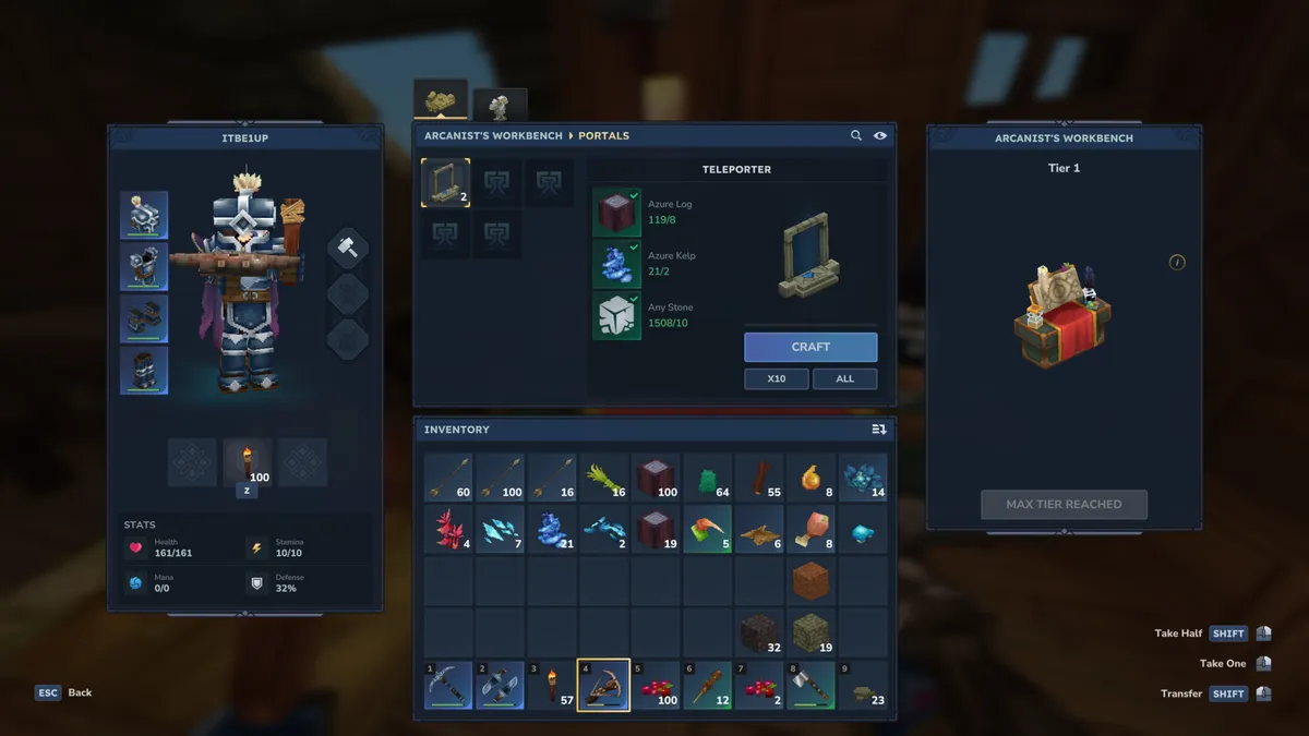 Büyücü İş Tezgahı’nı hazırladıktan sonra, ışınlayıcı parçalarını üretmeye başlayabilirsiniz. Bir kez üretim yaptığınızda oyun size iki adet geçit (portal) verir; bu da iki farklı nokta arasında bağlantı kurmak için yeterlidir. Eğer daha fazla bölgeye (örneğin hem evinize hem farklı biyomlara) erişmek isterseniz, daha fazla ışınlayıcı seti üretmeniz gerekecektir.