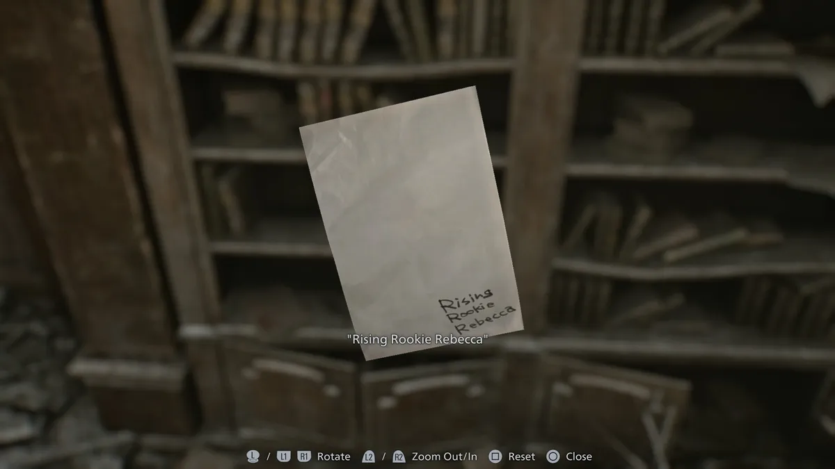 - Wesker’ın Ofisi: STARS fotoğrafının bulunduğu küçük köşe ofisine gidin. Süslü masanın çekmecesini kontrol ettiğinizde, kitabın kütüphaneye iade edildiğini belirten bir kart bulacaksınız.