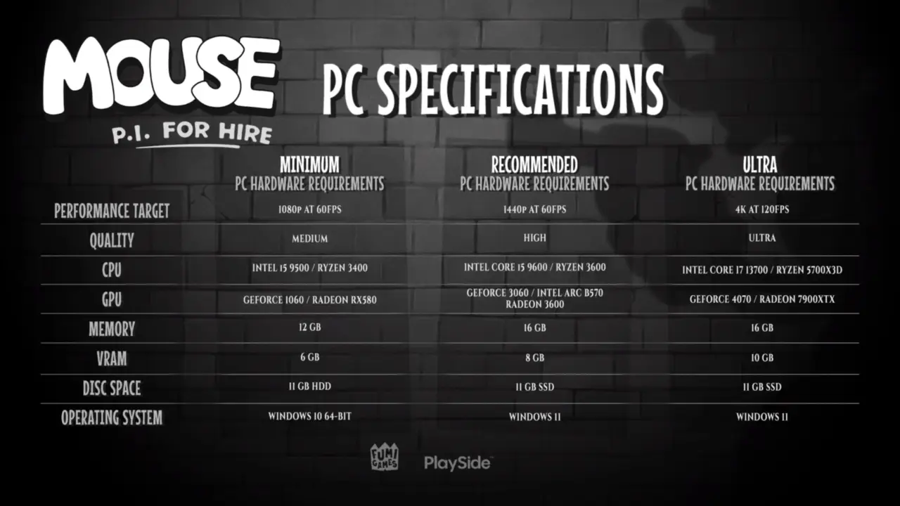 Eski çizgi film tarzıyla modern FPS mekaniklerini birleştiren ve oyun dünyasında büyük merak uyandıran MOUSE: P.I. For Hire için sona gelindi. Geliştirici Fumi Games, oyunun çıkışına sadece bir hafta kala teknik detayları ve sistem gereksinimlerini paylaştı. Hem yeni nesil konsol sahiplerini hem de PC oyuncularını nelerin beklediği artık netleşti.